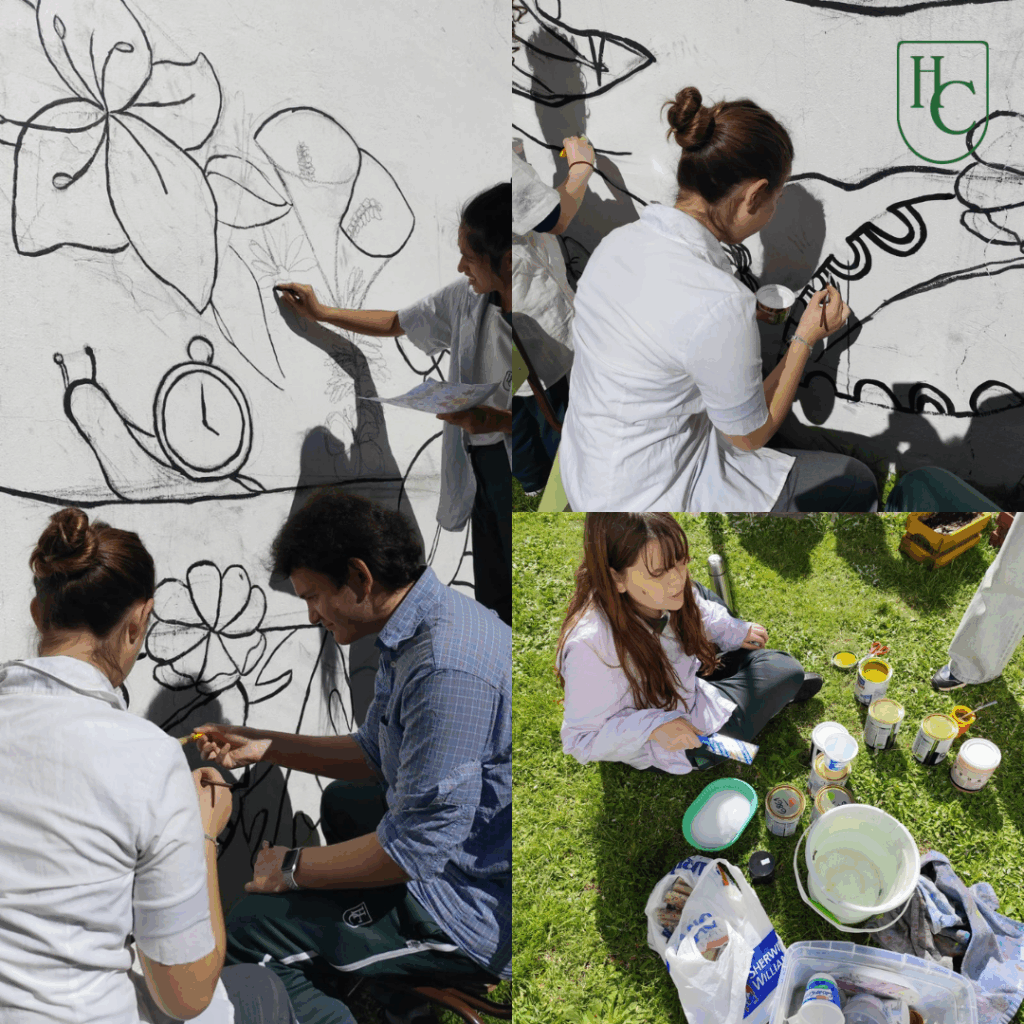 Con pinceles, colores e ideas propias, están diseñando y pintando un mural que será parte de nuestra próxima Expo.